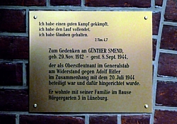 Die Tafel ist somit Erinnerung an den militärischen Widerstand gegen Hitler und im Speziellen an Günter Smend, einen Widerständler aus der örtlichen direkten Umgebung, dem Einzugsbereich von St. Nicolai Lüneburg.